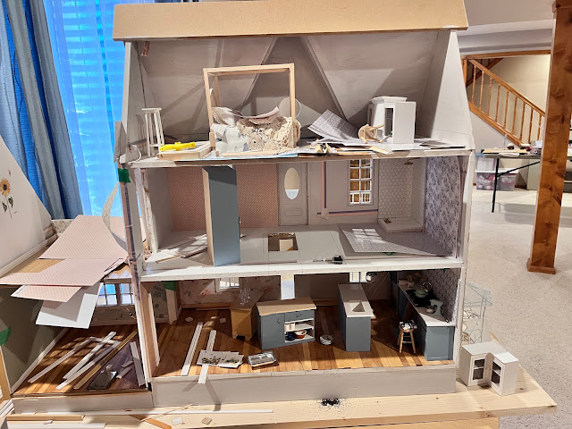 The Manchester certainly has taken a back seat to other chores, duties, and obligations, but I also became very frustrated with the project. That's not all. I realize that it has taken me so long because I get distracted with other mini projects along the way, yet that distraction sort of goes with the plan of finishing one room at a time. It take a long while to finish a dollhouse if that's how it works.